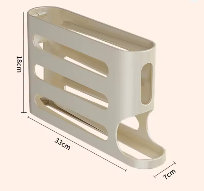 Nuestro dispensador de huevos cuenta con una estructura de gravedad y un diseño inclinado que ayuda a rodar los huevos sin atascarse. Al coger un huevo, los demás avanzan automáticamente, lo que garantiza un fácil acceso y almacenamiento. Huevera de 4 niveles de gran capacidad: El diseño de cuatro niveles no requiere montaje y puede contener hasta 30 huevos a la vez. Puede preparar fácilmente natillas, pudines y magdalenas para su familia y amigos en cualquier momento sin preocuparse por quedarse sin huevos. Solución que ahorra espacio: Con 33 cm de profundidad x 18 cm de ancho x 6,8 cm de alto, su tamaño compacto ahorra espacio en su refrigerador o encimera de cocina, lo que le permite deshacerse de las cajas de cartón y mantenerse organizado. Optimiza la organización del refrigerador y minimiza el desorden. Resistente y duradero: El huevera para refrigerador está hecho de plástico PP grueso de alta calidad, resistente y duradero, y no se daña fácilmente. Su elegante diseño no solo ahorra espacio, sino que también mantiene sus huevos alineados y accesibles. ¡Dígale adiós a los estantes desordenados! Nuestro dispensador de huevos para refrigerador se puede colocar en el refrigerador, armario, mostrador, cocina, etc. Es la solución perfecta para optimizar el almacenamiento en su cocina.